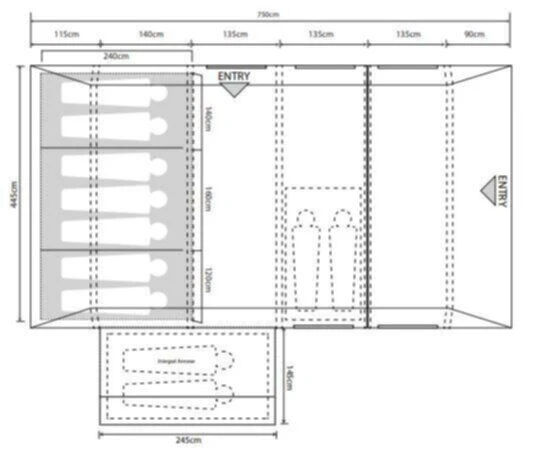 Adding to the great success of the Outdoor Revolution Camp Star 700, the 700SE offers the same design, but with an in-built side extension to add living space, storage space or potential sleeping space to the back left side. The Camp Star 700se is the perfect option for family camping, with a 3-zone design that allows you to adapt your camping style depending on the weather conditions, and the number of inhabitants. It is designed to sleep up to seven people, but optional 2-person inner pods can be added to both the front of the living space and the side extension, taking the shelter up to a maximum of 11 people.